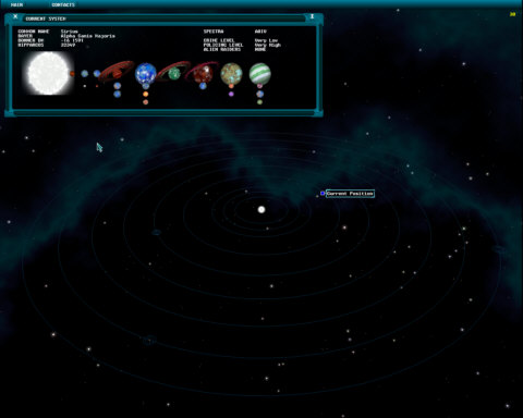 The System Window that is shown towards the top of the screen as also detailed on the left provides an overview of each of the celestial bodies and their orbital positions relative to each other.