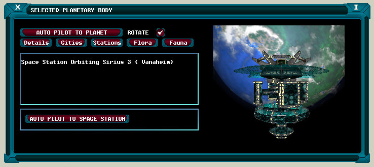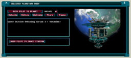 The Solar System Map also allows any position on a non gaseous planet's surface to be selected as an auto pilot destination. Simply select the desired planet and zoom into it using the mouse scroll wheel or the 'Page Up' key. Once a sufficient level of detail has been achieved, 'left click' on the required point and engage the auto pilot using the 'a' key.