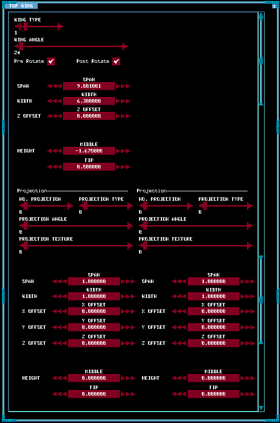 editing the 'wing' files held in the 'objects' directory could cause odd