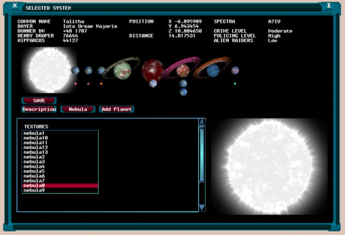 The background nebula for the selected system can be specified by simply selecting the relevant texture from the list as illustrated below.