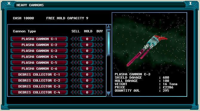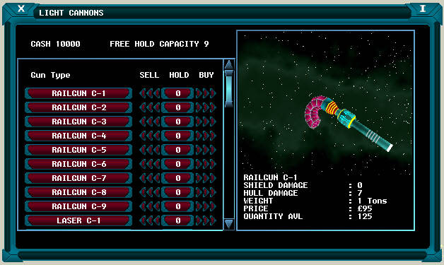 Cannons in the form of Lasers, Railguns or Plasma Weapons use a screen that has an identical format to that of the Ordnance Window.