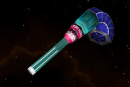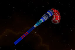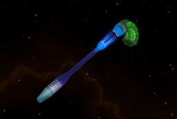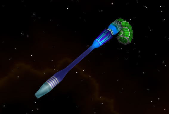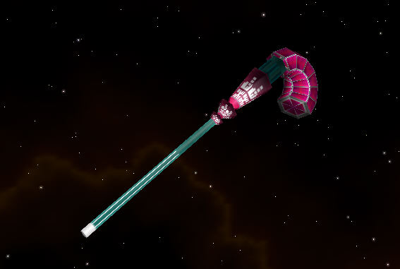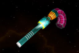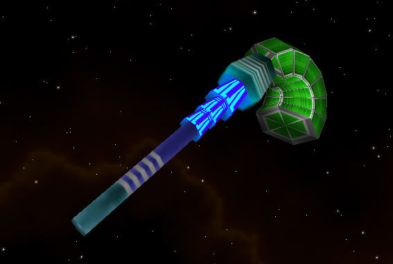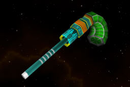 A Railgun is an Electromagnetic weapon that fires a projectile (or armature) using an electric current. The barrel of the gun contains a pair of rails which are connected to an enormous power supply (typically a compulsator) which is contained in the distinctive hook like appendage at the rear. An electric current passing along the rails and through the armature generates a magnetic field which propels the projectile with great speed along the barrel and out through the muzzle of the gun.